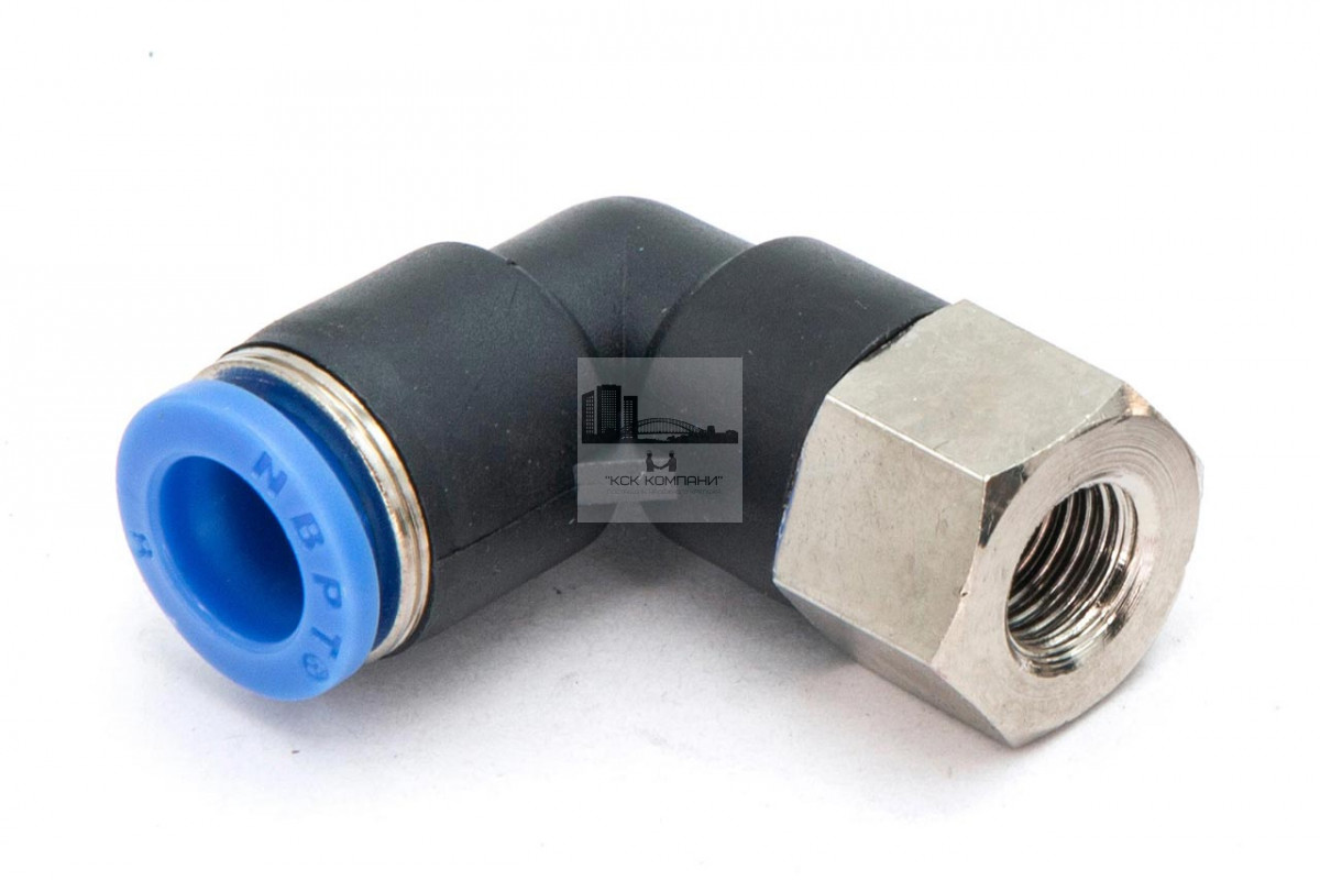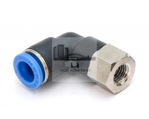PLF – модель фитинга (трубка-резьба): L-образный фитинг с внутренней резьбой с одной стороны и нажимным цанговым соединением с другой стороны