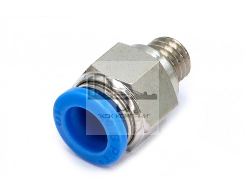 PC – модель фитинга (трубка-резьба): прямой фитинг с наружной резьбой с одной стороны и нажимным цанговым соединением с другой стороны