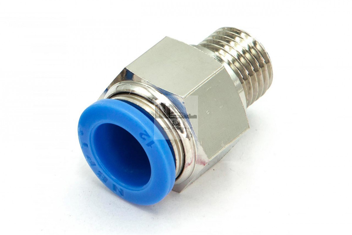 PC – модель фитинга (трубка-резьба): прямой фитинг с наружной резьбой с одной стороны и нажимным цанговым соединением с другой стороны