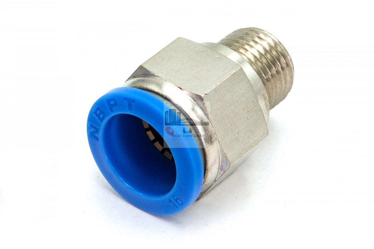 PC – модель фитинга (трубка-резьба): прямой фитинг с наружной резьбой с одной стороны и нажимным цанговым соединением с другой стороны