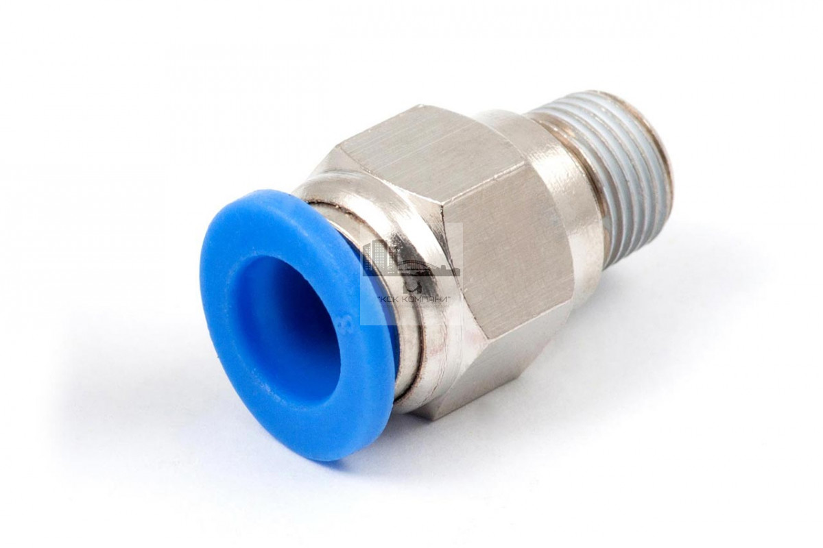 PC – модель фитинга (трубка-резьба): прямой фитинг с наружной резьбой с одной стороны и нажимным цанговым соединением с другой стороны