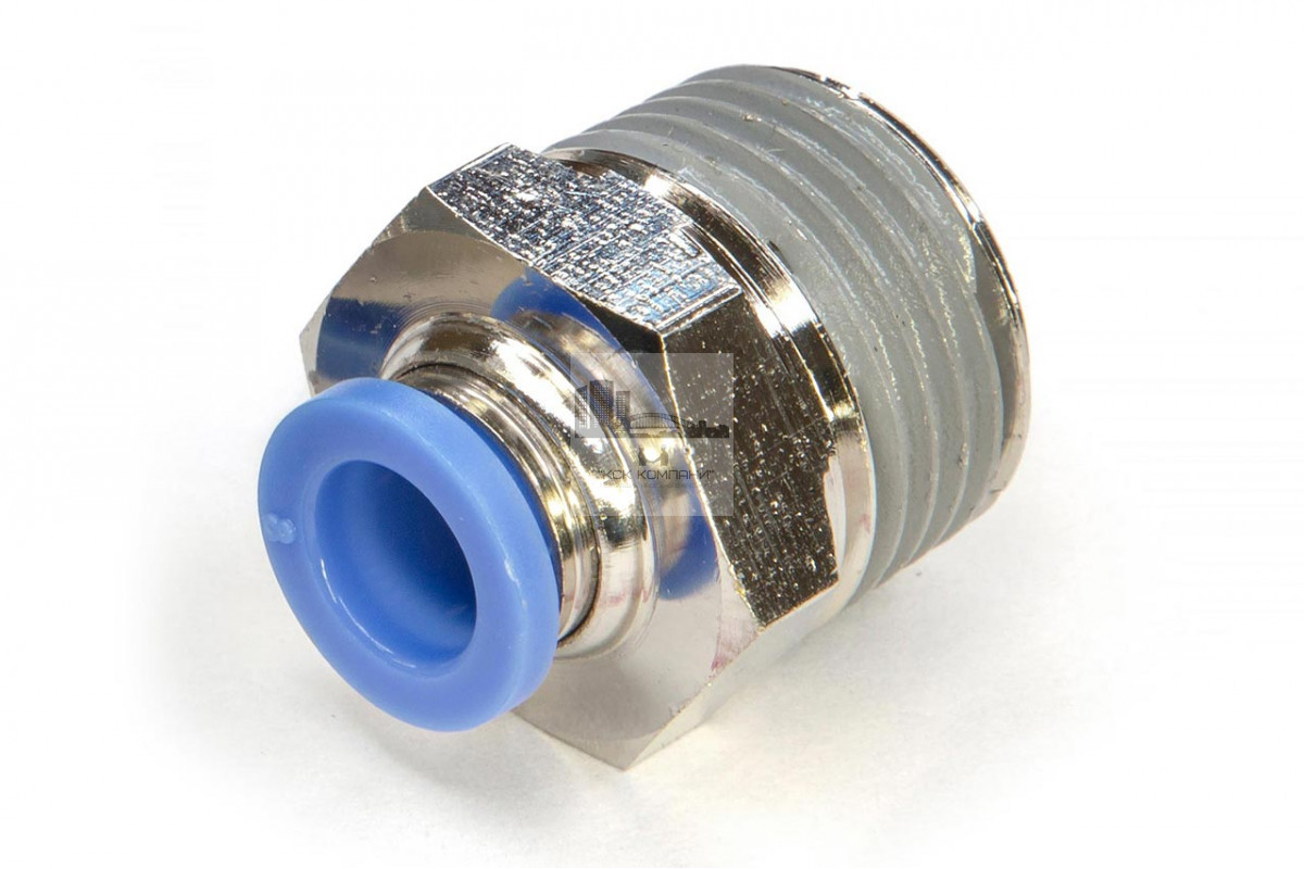 PC – модель фитинга (трубка-резьба): прямой фитинг с наружной резьбой с одной стороны и нажимным цанговым соединением с другой стороны