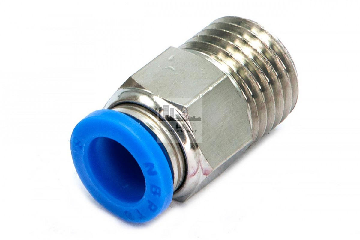 PC – модель фитинга (трубка-резьба): прямой фитинг с наружной резьбой с одной стороны и нажимным цанговым соединением с другой стороны