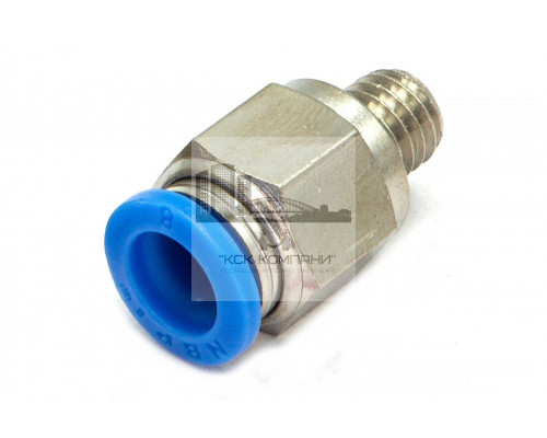 PC – модель фитинга (трубка-резьба): прямой фитинг с наружной резьбой с одной стороны и нажимным цанговым соединением с другой стороны
