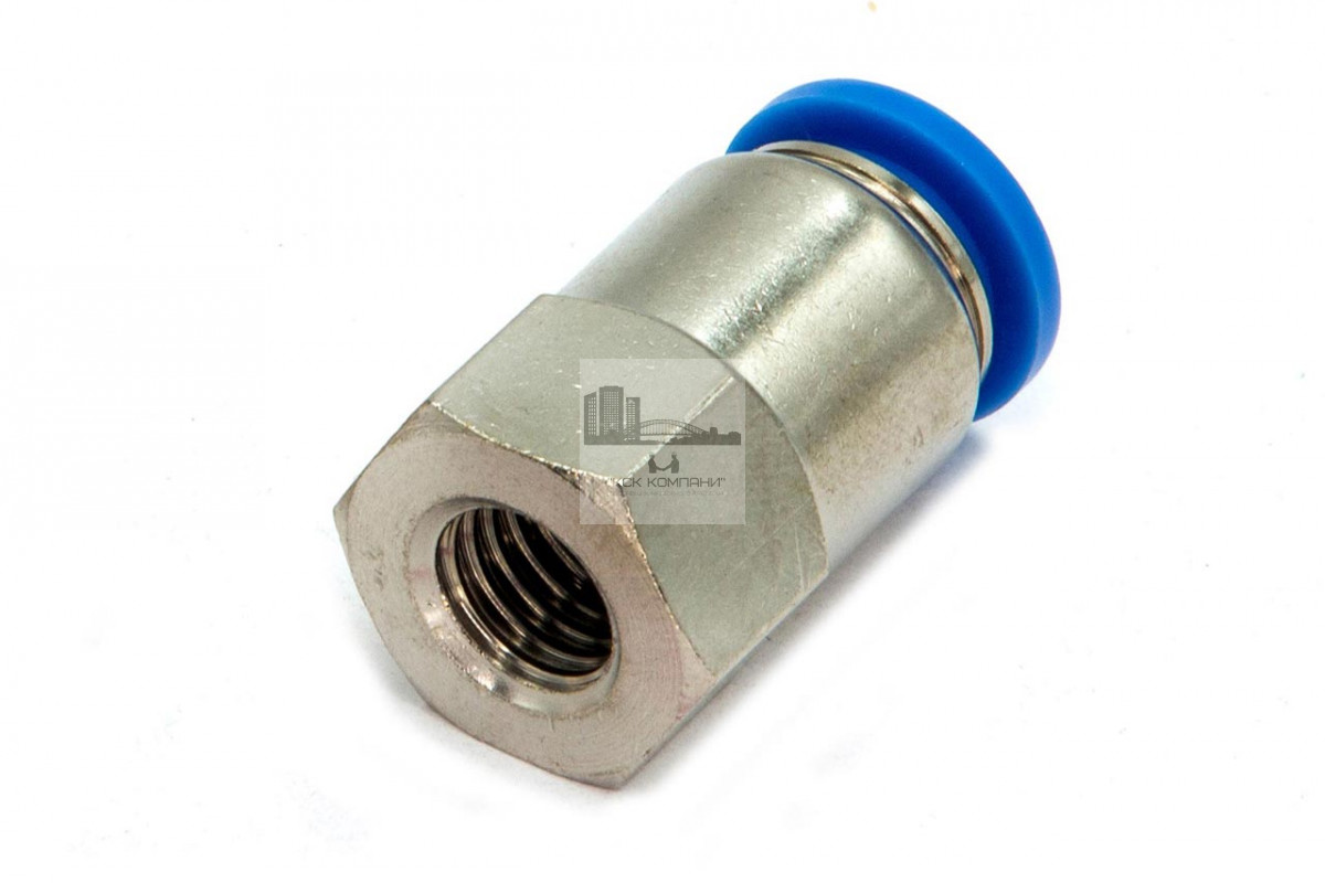 PCF – модель фитинга (трубка-резьба): прямой фитинг с внутренней резьбой с одной стороны и нажимным цанговым соединением с другой стороны