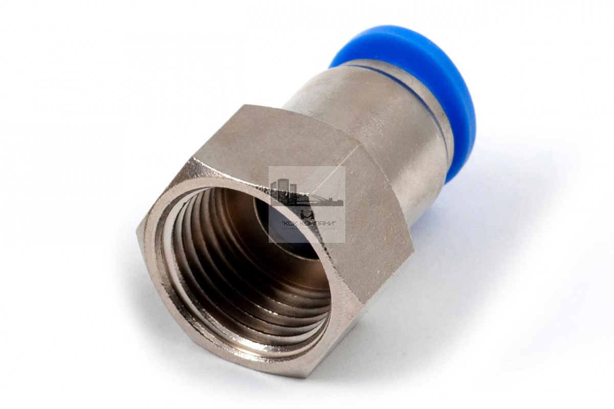 PCF – модель фитинга (трубка-резьба): прямой фитинг с внутренней резьбой с одной стороны и нажимным цанговым соединением с другой стороны
