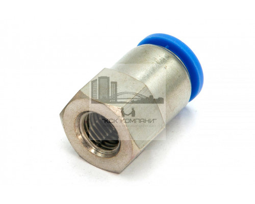 PCF – модель фитинга (трубка-резьба): прямой фитинг с внутренней резьбой с одной стороны и нажимным цанговым соединением с другой стороны