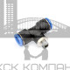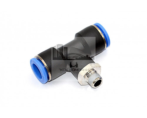 PТ – модель фитинга (трубка-резьба): Т-образный фитинг с наружной резьбой с одной стороны и нажимным цанговым соединением с других сторон