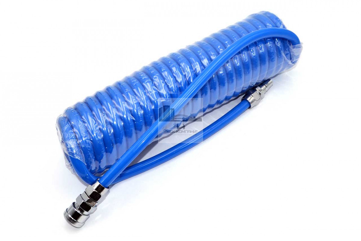Пневмотрубка спиральная полиуретановая PU95 12х8 мм L 15 м (10 атм, голубая) Китай