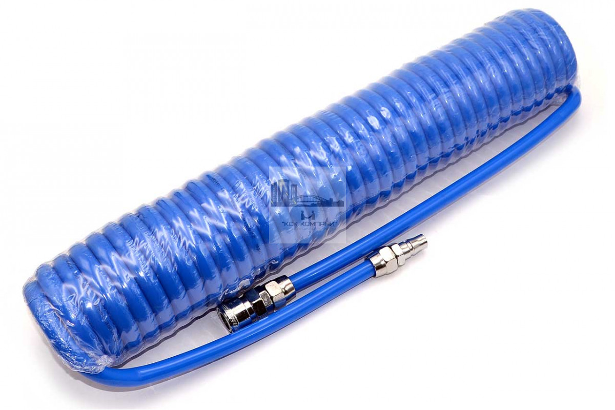 Пневмотрубка спиральная полиуретановая PU95 12х8 мм L 15 м (10 атм, голубая) Китай