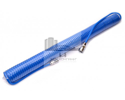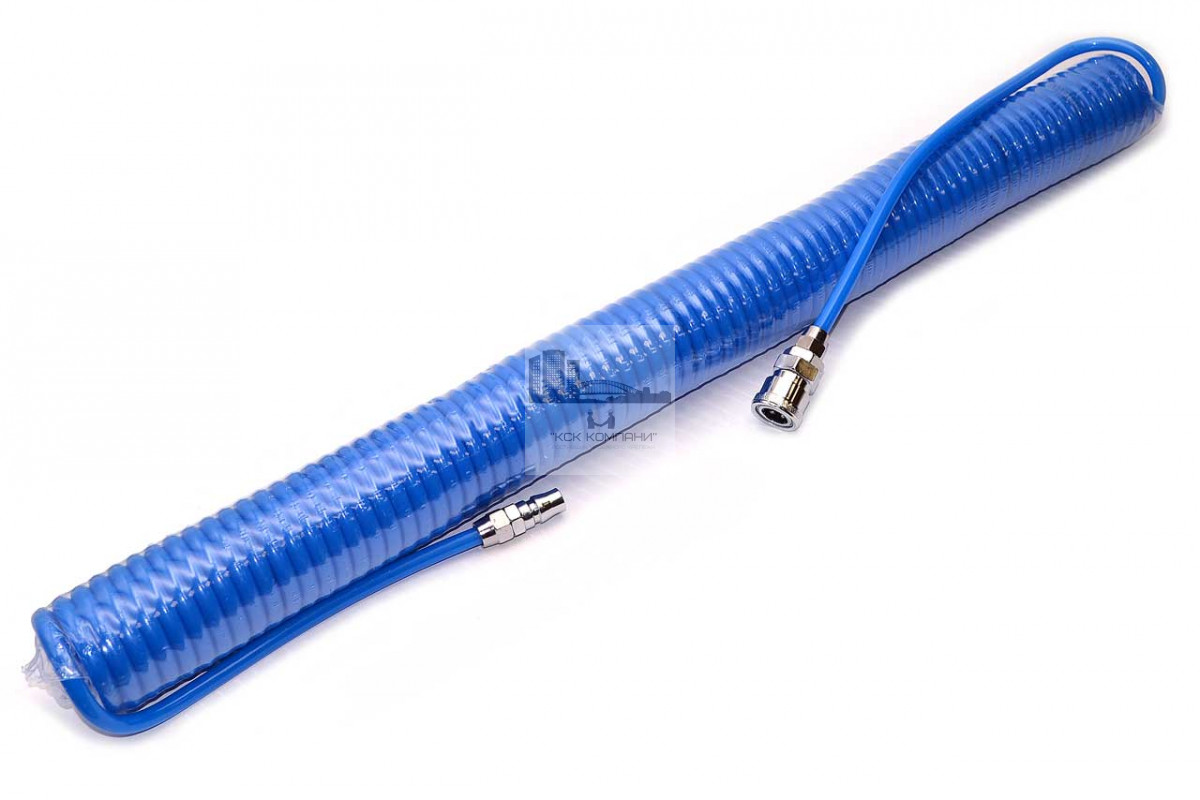 Пневмотрубка спиральная полиуретановая PU95 12х8 мм L 15 м (10 атм, голубая) Китай