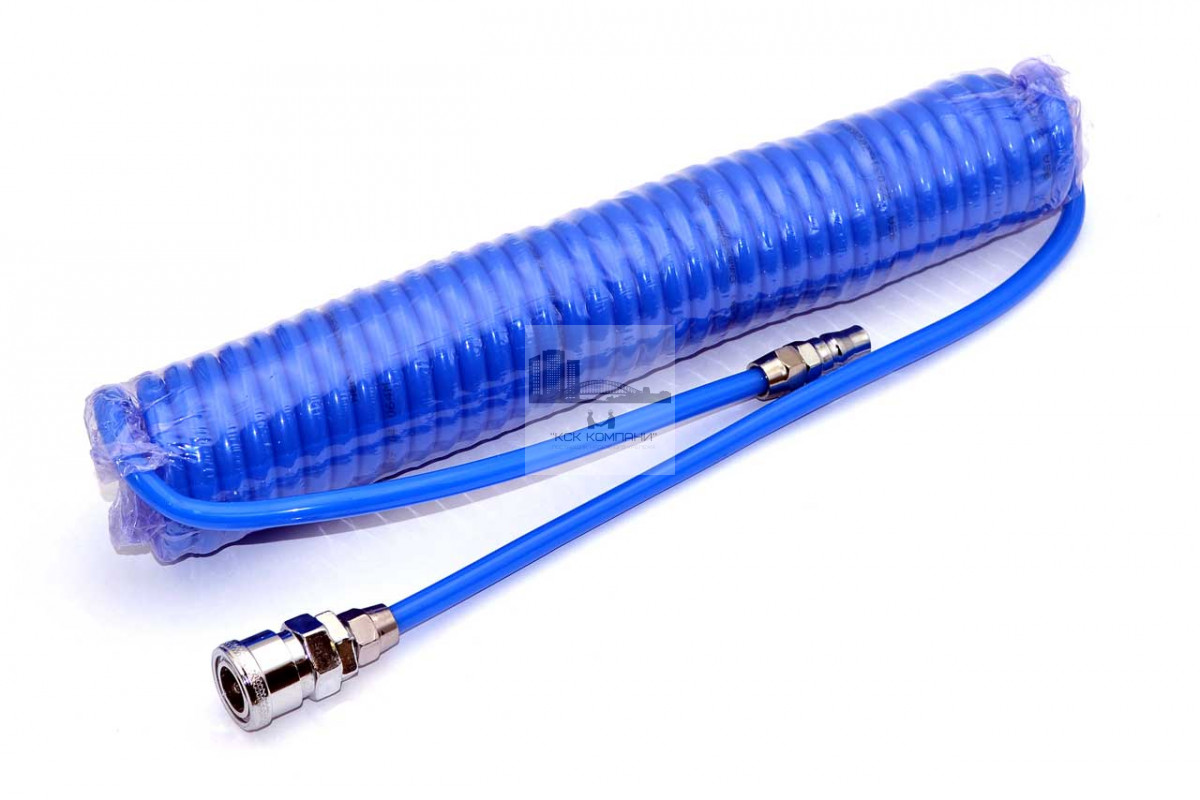 Пневмотрубка спиральная полиуретановая PU95 12х8 мм L 15 м (10 атм, голубая) Китай