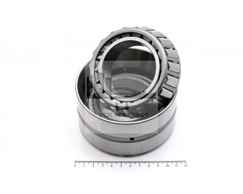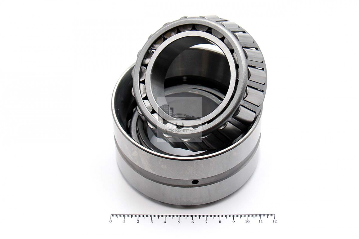 Описание: Подшипник качения роликовый радиально-упорный конический двухрядный типовой с двумя внутренними кольцами.