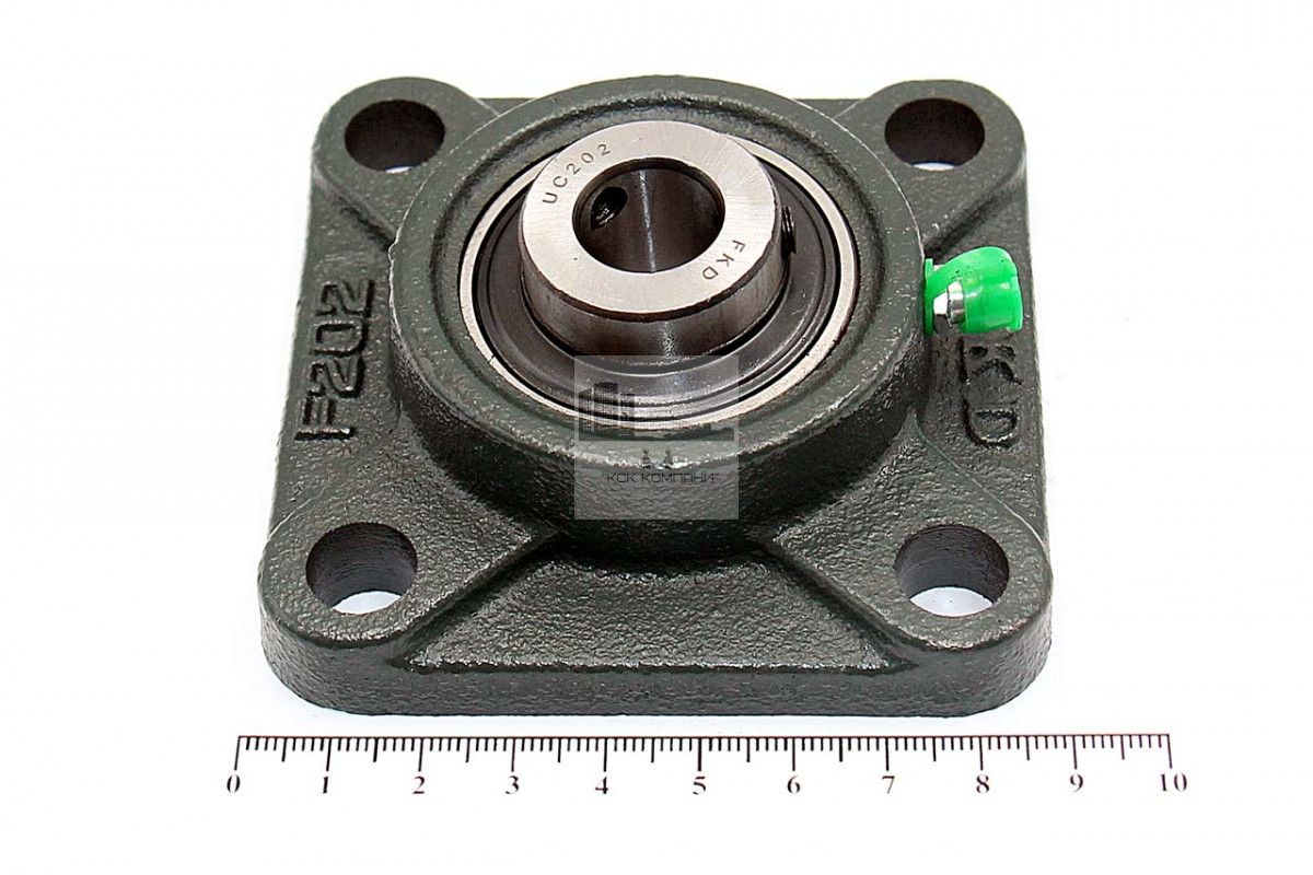 Подшипник имеет отверстия и канавку для смазки, корпус комплектуется пресс-маслёнкой. Направление воспринимаемых нагрузок - радиальное и осевое в обе стороны. Монтаж на валу удобен и прост. Установлен в корпус F фланцевого типа.