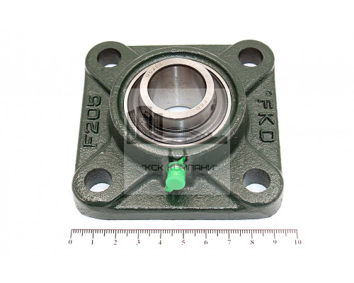 Подшипник имеет отверстия и канавку для смазки, корпус комплектуется пресс-маслёнкой. Направление воспринимаемых нагрузок - радиальное и осевое в обе стороны. Монтаж на валу удобен и прост. Установлен в корпус F фланцевого типа.