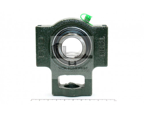 Подшипник имеет отверстия и канавку для смазки, корпус комплектуется пресс-маслёнкой. Направление воспринимаемых нагрузок - радиальное и осевое в обе стороны. Монтаж на валу удобен и прост. Установлен в корпус Т натяжного типа.