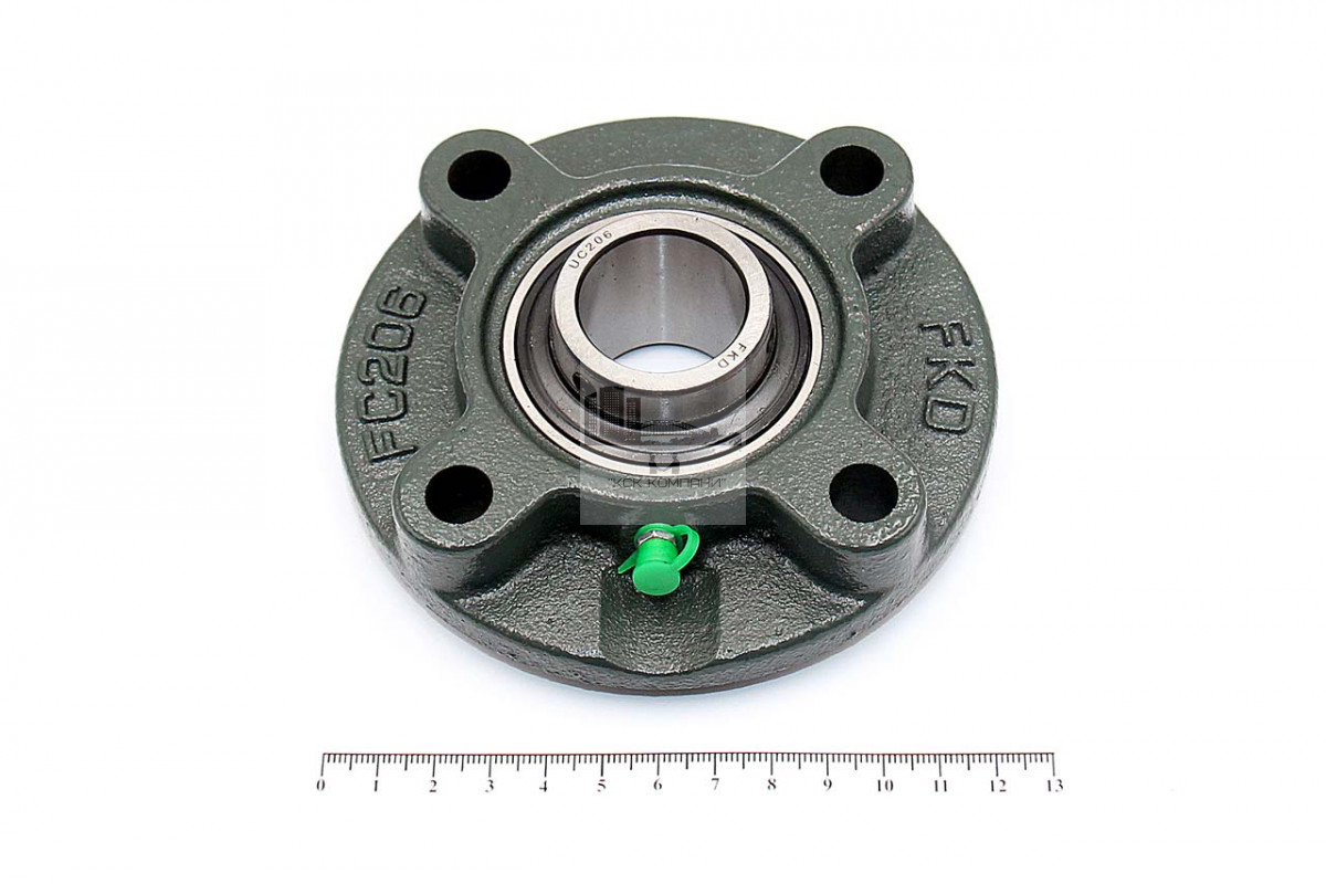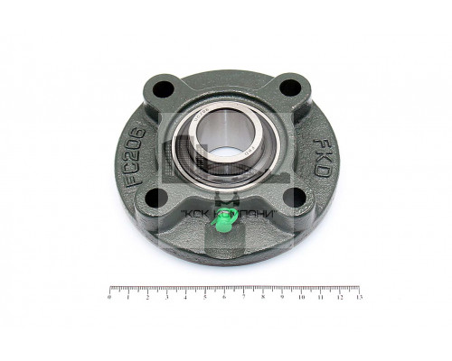 Подшипник имеет отверстия и канавку для смазки, корпус комплектуется пресс-маслёнкой. Направление воспринимаемых нагрузок - радиальное и осевое в обе стороны. Монтаж на валу удобен и прост. Установлен в корпус FC фланцевого типа..