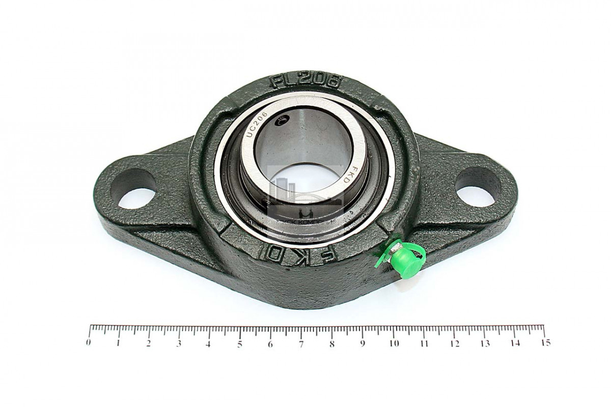 Подшипник имеет отверстия и канавку для смазки, корпус комплектуется пресс-маслёнкой. Направление воспринимаемых нагрузок - радиальное и осевое в обе стороны. Монтаж на валу удобен и прост. Установлен в корпус PL фланцевого типа.