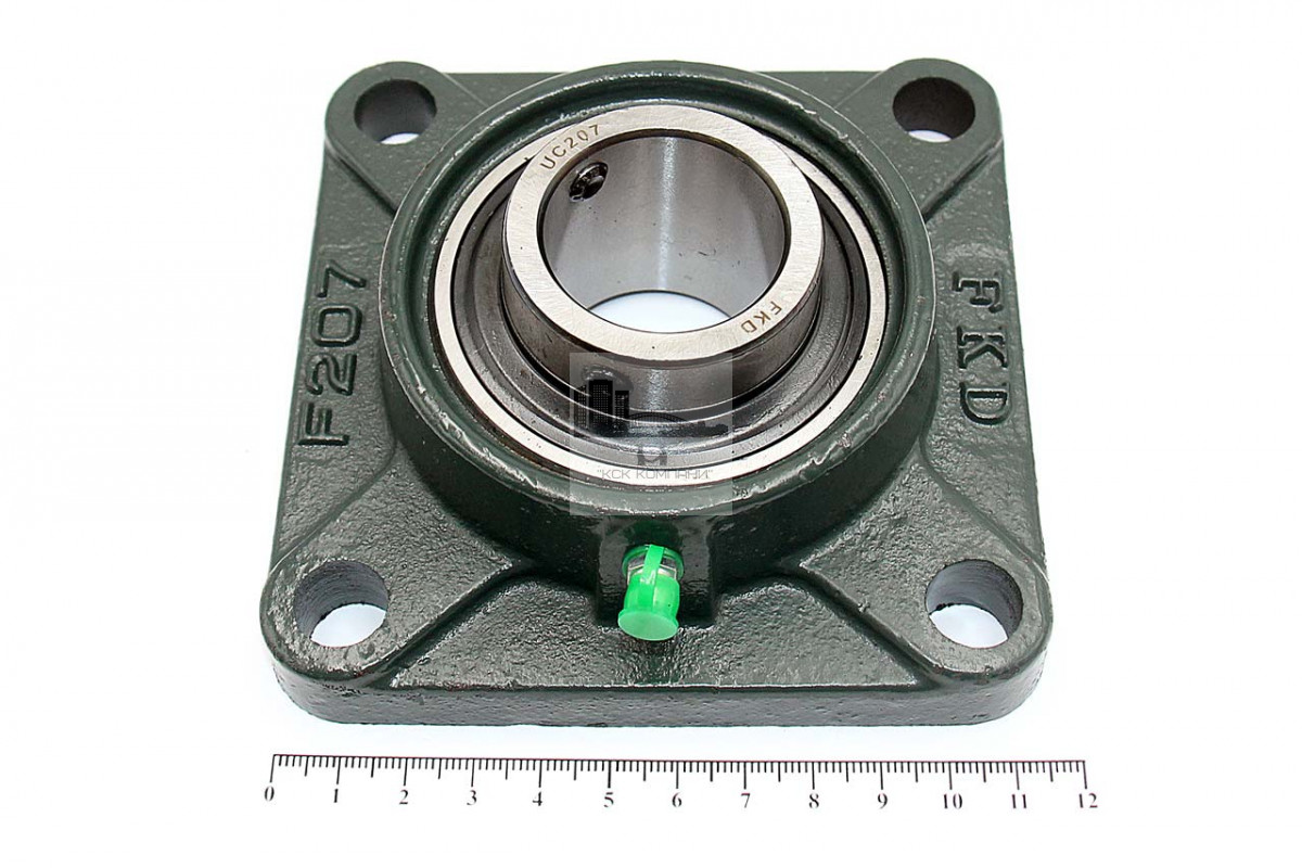 Подшипник имеет отверстия и канавку для смазки, корпус комплектуется пресс-маслёнкой. Направление воспринимаемых нагрузок - радиальное и осевое в обе стороны. Монтаж на валу удобен и прост. Установлен в корпус F фланцевого типа.
