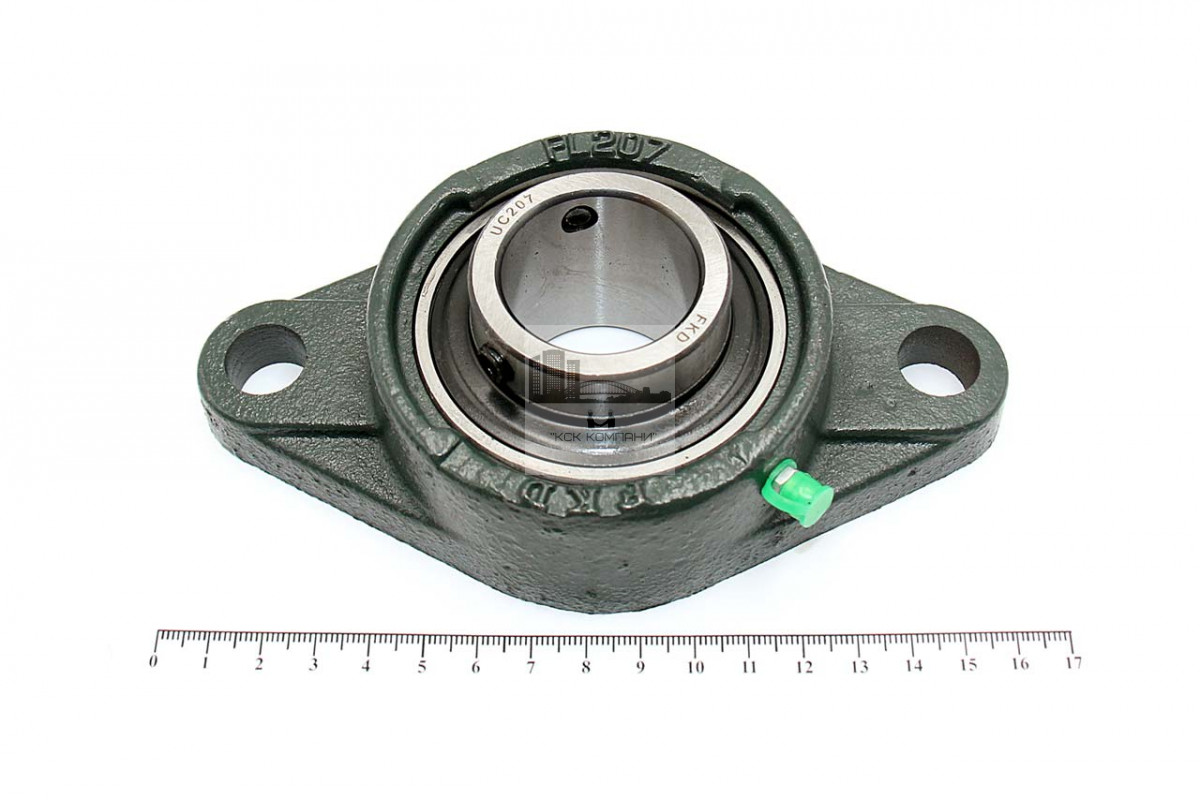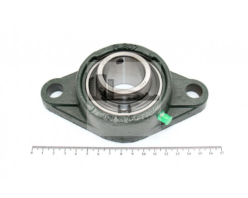 Подшипник имеет отверстия и канавку для смазки, корпус комплектуется пресс-маслёнкой. Направление воспринимаемых нагрузок - радиальное и осевое в обе стороны. Монтаж на валу удобен и прост. Установлен в корпус PL фланцевого типа.
