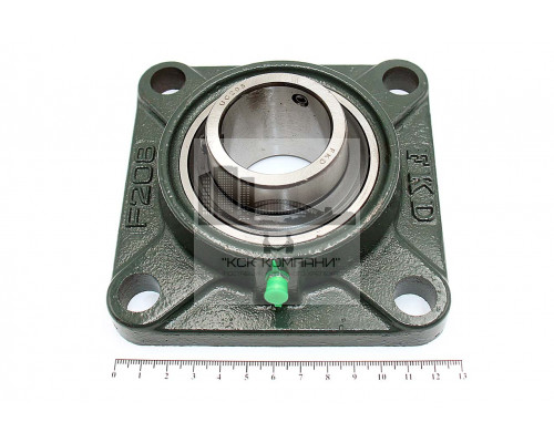 Подшипник имеет отверстия и канавку для смазки, корпус комплектуется пресс-маслёнкой. Направление воспринимаемых нагрузок - радиальное и осевое в обе стороны. Монтаж на валу удобен и прост. Установлен в корпус F фланцевого типа.