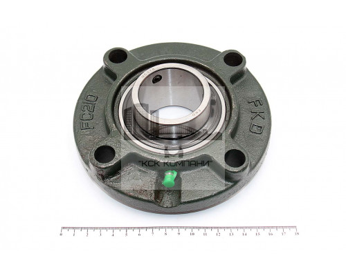 Подшипник имеет отверстия и канавку для смазки, корпус комплектуется пресс-маслёнкой. Направление воспринимаемых нагрузок - радиальное и осевое в обе стороны. Монтаж на валу удобен и прост. Установлен в корпус FC фланцевого типа..