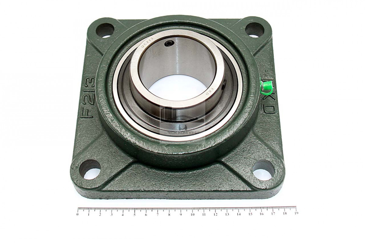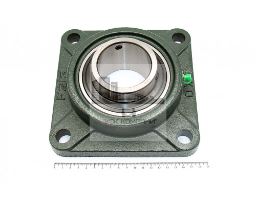 Подшипник имеет отверстия и канавку для смазки, корпус комплектуется пресс-маслёнкой. Направление воспринимаемых нагрузок - радиальное и осевое в обе стороны. Монтаж на валу удобен и прост. Установлен в корпус F фланцевого типа.