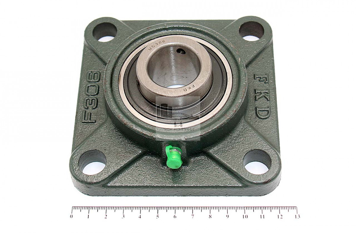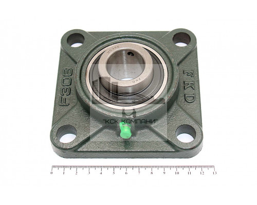 Подшипник имеет отверстия и канавку для смазки, корпус комплектуется пресс-маслёнкой. Направление воспринимаемых нагрузок - радиальное и осевое в обе стороны. Монтаж на валу удобен и прост. Установлен в корпус F фланцевого типа.