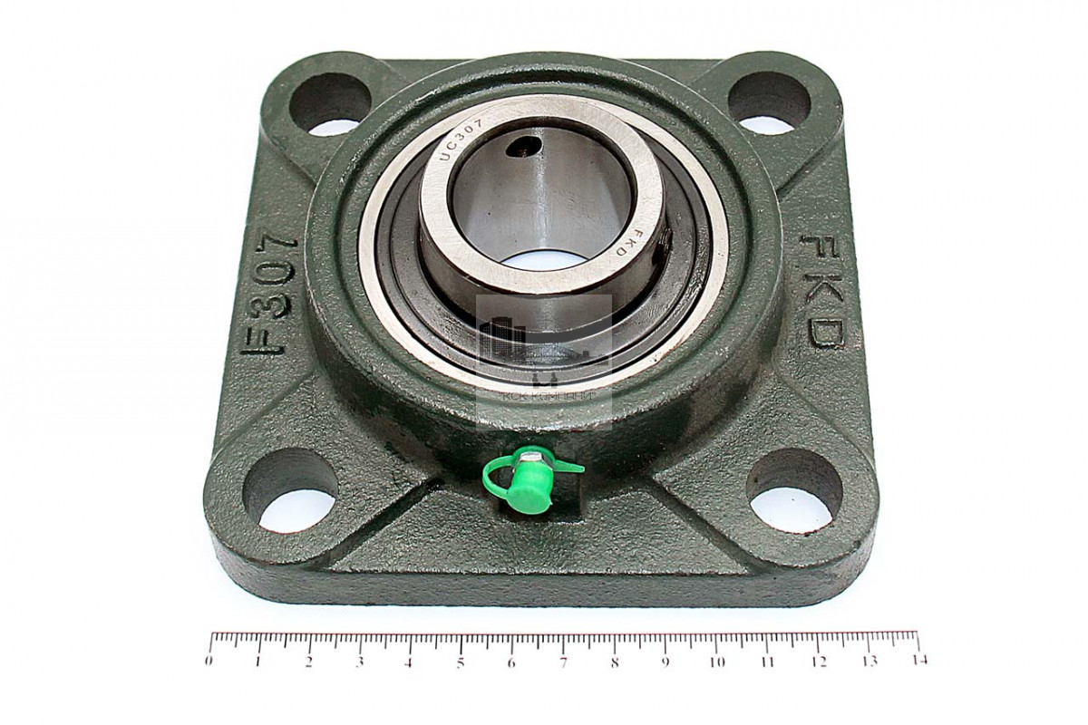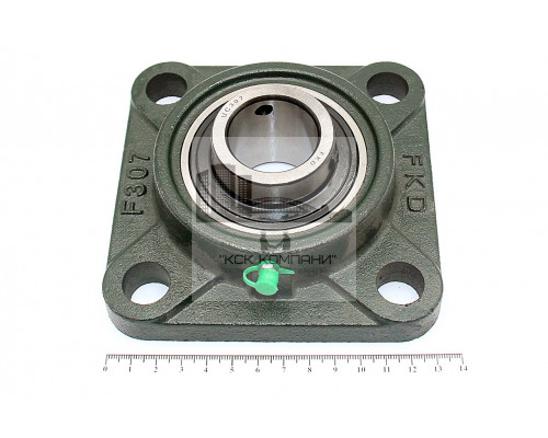 Подшипник имеет отверстия и канавку для смазки, корпус комплектуется пресс-маслёнкой. Направление воспринимаемых нагрузок - радиальное и осевое в обе стороны. Монтаж на валу удобен и прост. Установлен в корпус F фланцевого типа.