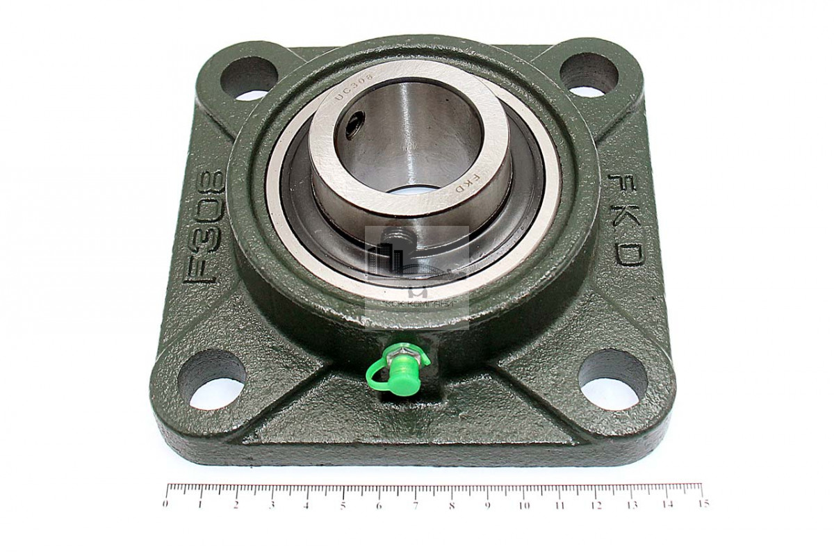 Подшипник имеет отверстия и канавку для смазки, корпус комплектуется пресс-маслёнкой. Направление воспринимаемых нагрузок - радиальное и осевое в обе стороны. Монтаж на валу удобен и прост. Установлен в корпус F фланцевого типа.