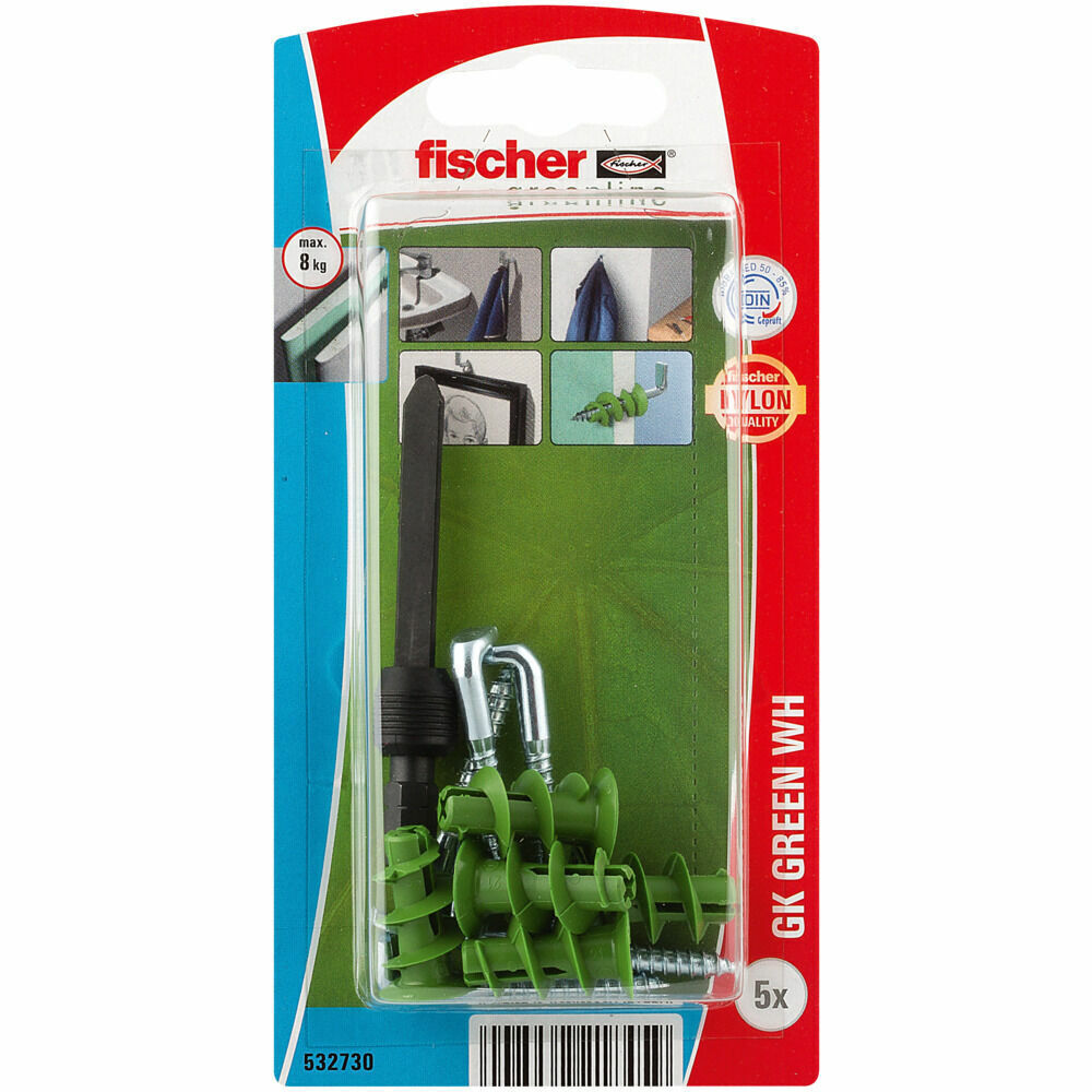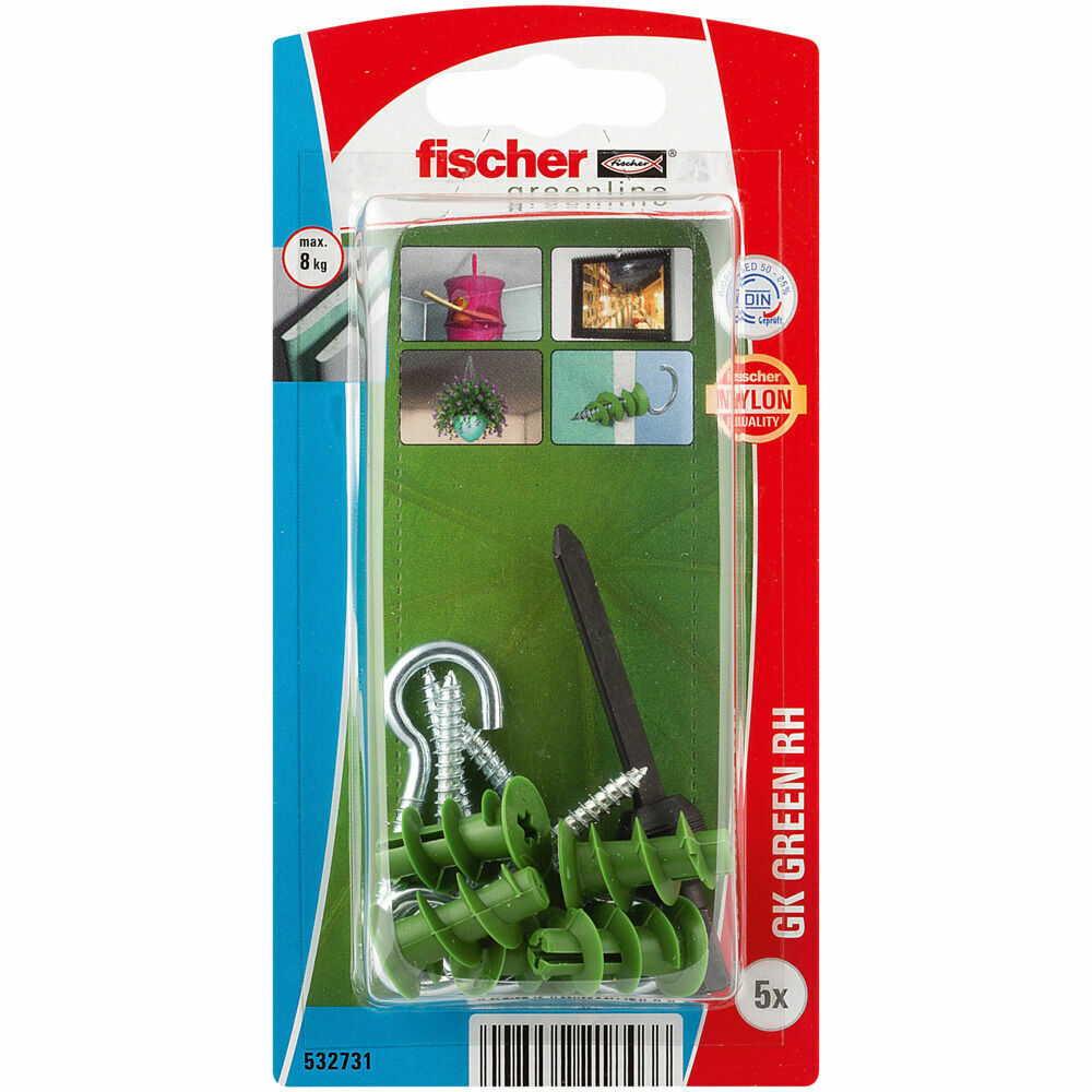 Дюбель для гипсокартона fischer GK Green RH K NV с шурупом-крюком ЭКО, 22 мм (4.3x46 мм)