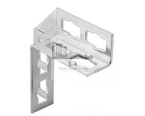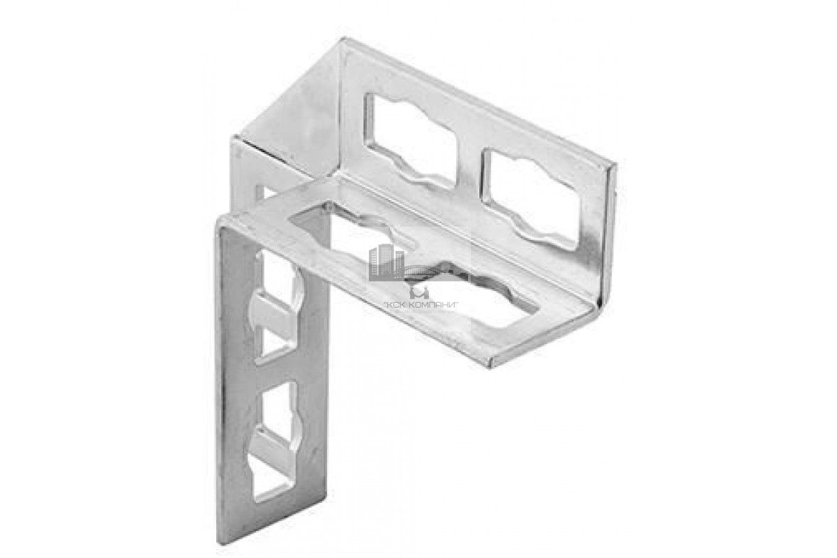 Описание и особенности: Уголок изготавливают из оцинкованной стали, толщина которой составляет 4 мм. Этот параметр увеличивает жесткость и несущую способность полученного соединения. Конфигурация изделия – это отрезок угольника 41x41 мм, который раскроен под углом 90° на две одинаковые половины длиной 150. Конструкция уголка усилена приваркой кницы из листового металла. Во всех четырех полках уголка выполнено по два фигурных паза, используемых для крепления шин при помощи болта в комплекте с монтажной гайкой PFCN. |