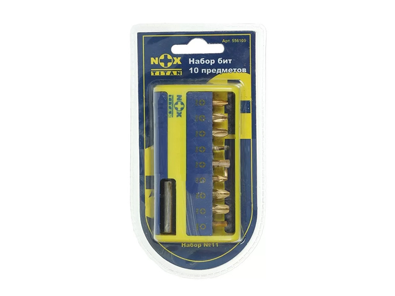 Набор бит №11 (Ph1,2,3, Pz1,2,3, шлиц 3, 5 шестигр.4 , держ. для бит) "Titan" (10 шт) Распродажа