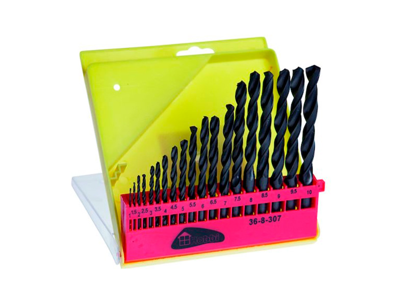 Набор сверл по металлу, 19 предм. 1,0-10,0 мм, шаг через 0,5 мм, металлич. короб