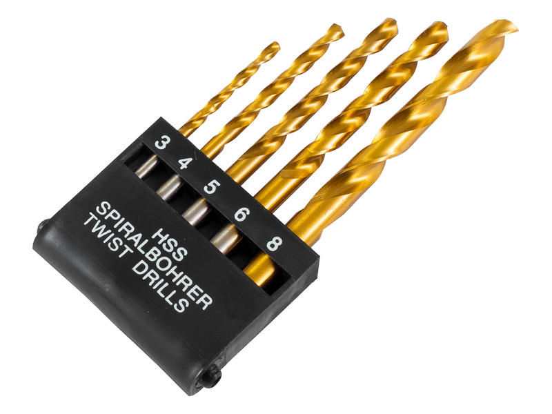 Набор нитридтитановых сверл по металлу, 5 предм. 3,4,5 6,8 мм, пластмассовый короб