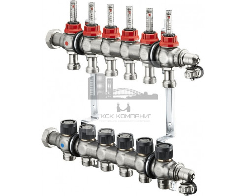 Описание - Распределительная гребенка Oventrop "Multidis SF" со встроенными ротаметрами на 6 контуров 1404356, нержавеющая сталь