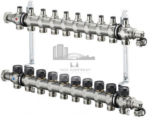 Распределительная гребенка Oventrop "Multidis SF" на 10 контуров 1404560, нержавеющая сталь для панельного отопления и охлаждения со встроенными регулирующими вставками.