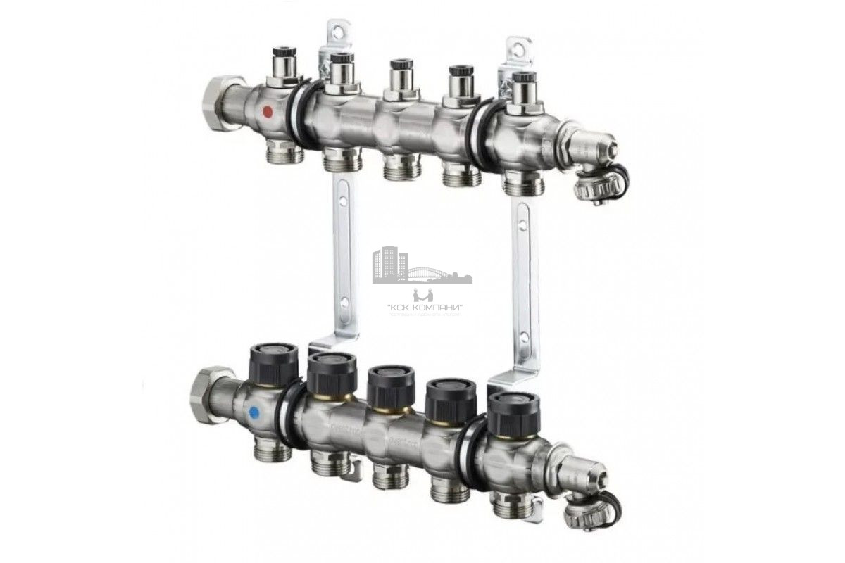 Распределительная гребенка Oventrop "Multidis SF" на 5 контуров 1404555, нержавеющая сталь для панельного отопления и охлаждения со встроенными регулирующими вставками.