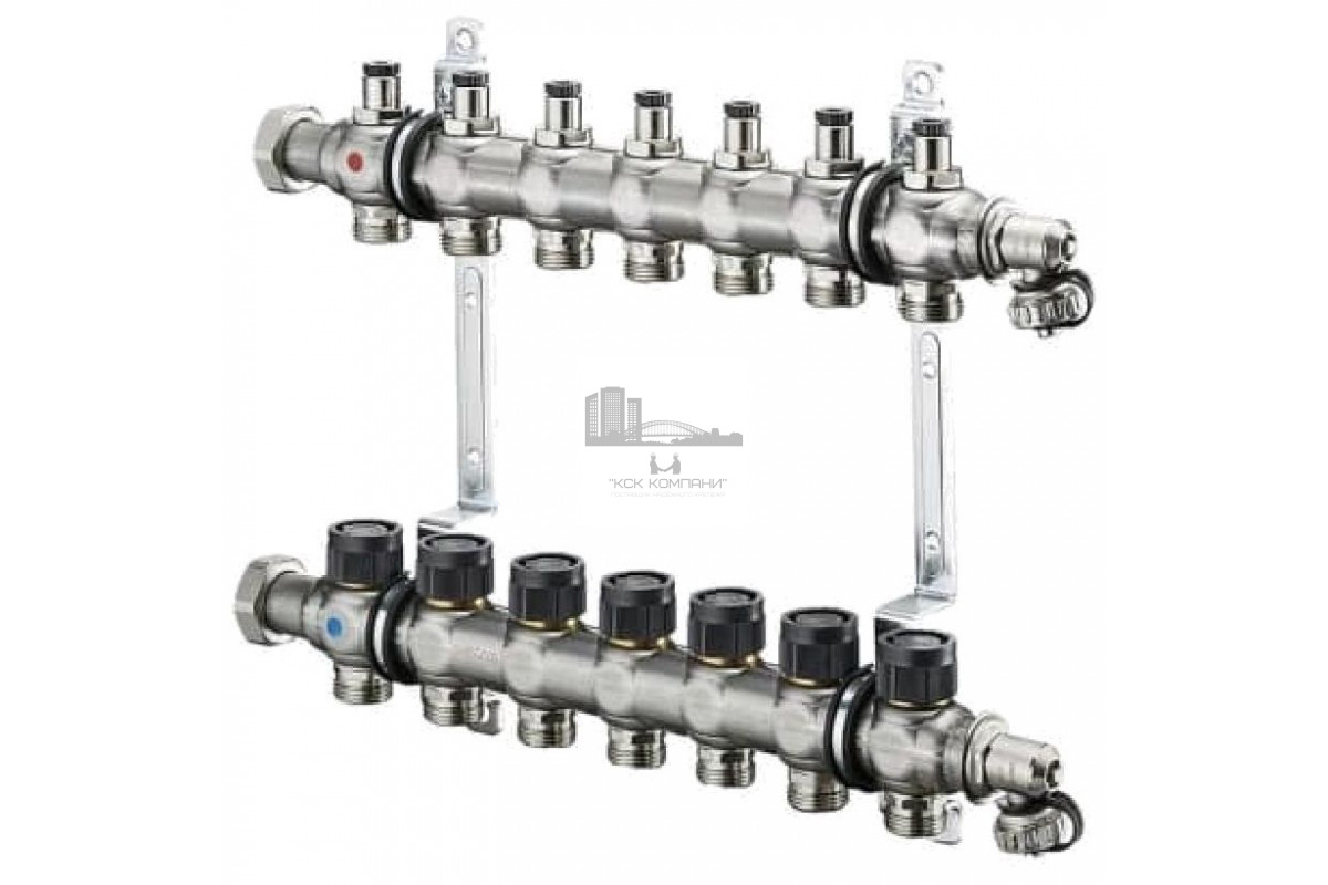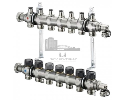 Распределительная гребенка Oventrop "Multidis SF" на 7 контуров 1404557, нержавеющая сталь для панельного отопления и охлаждения со встроенными регулирующими вставками.