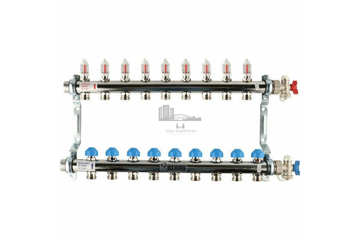 Описание - Распределительный коллектор REHAU HKV-D на 9 контуров нержавеющая сталь 12080911002