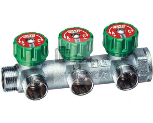 Описание - Регулирующий проходной коллектор FAR ВР-НР 1" б/гаек М24х19 с 3 отводами (метрика) FK 3850 C1