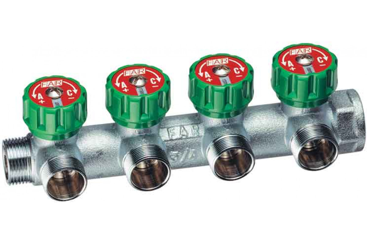 Описание - Регулирующий проходной коллектор FAR ВР-НР 3/4" б/гаек М24х19 с 4 отводами (метрика) F 3856 C34