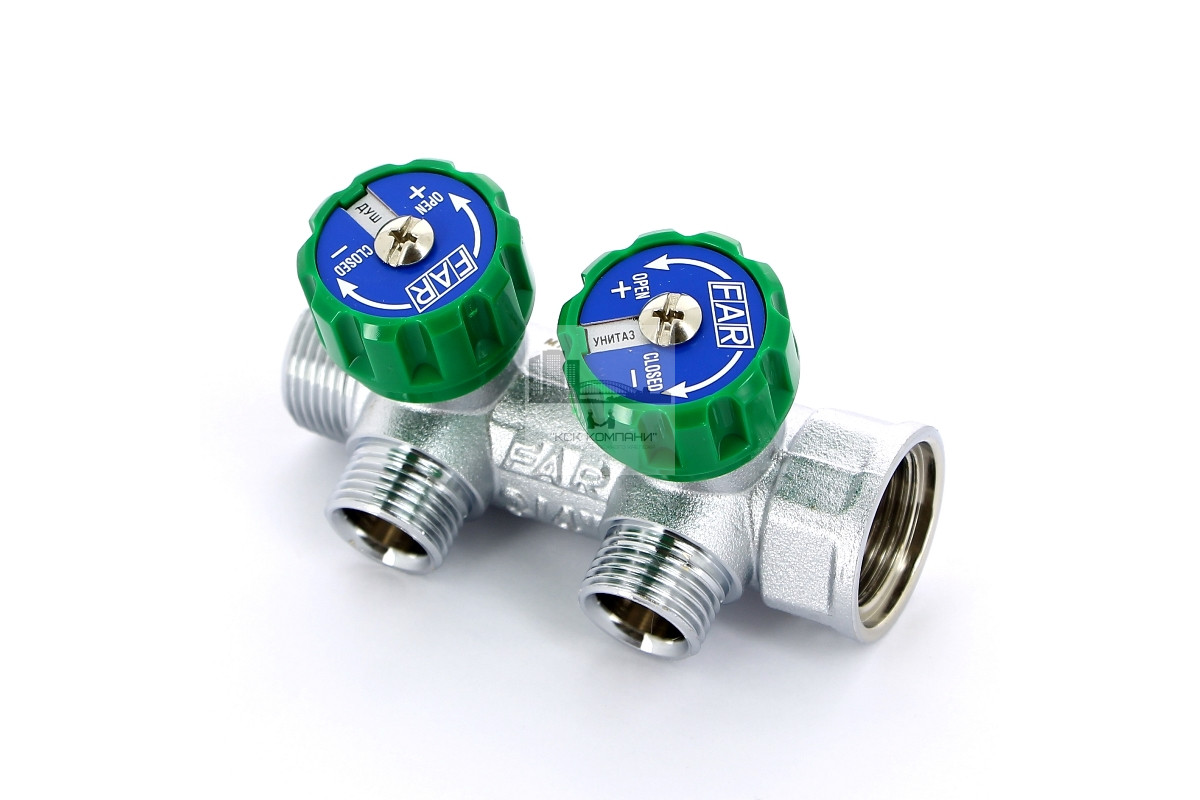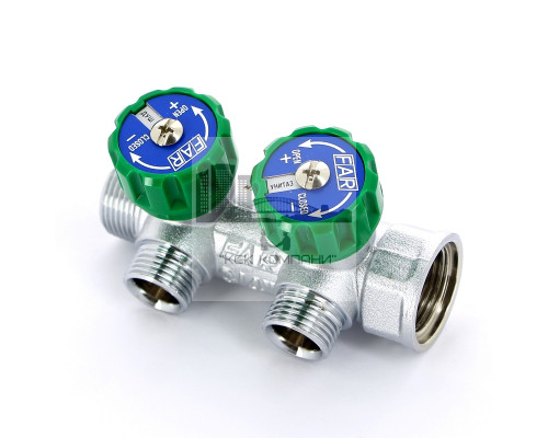 Описание - Регулирующий проходной коллектор FAR ВР-НР 3/4"х1/2" с 2 отводами (EUR) FK 3821 3412