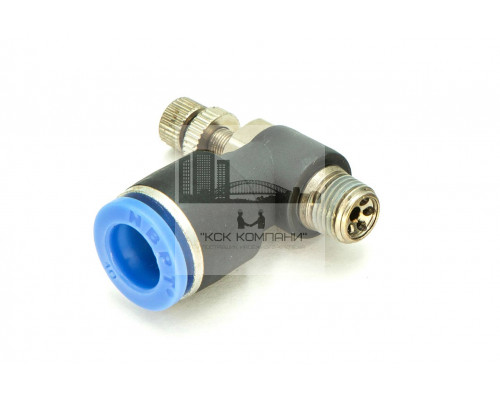 NSC – модель фитинга (трубка-резьба-регулятор): L-образный с наружной резьбой с одной стороны и нажимным цанговым соединением с другой стороны и регулятором воздуха.