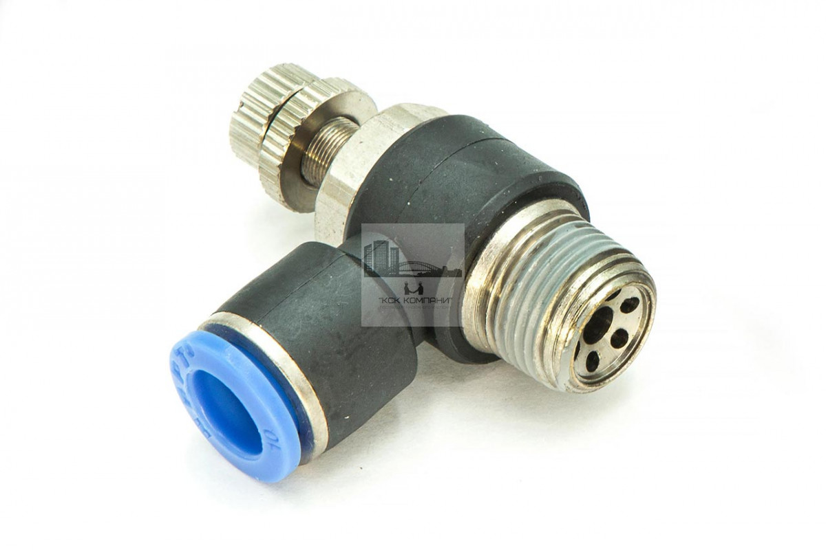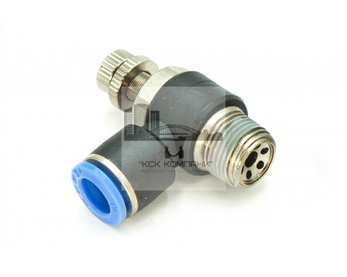 NSC – модель фитинга (трубка-резьба-регулятор): L-образный с наружной резьбой с одной стороны и нажимным цанговым соединением с другой стороны и регулятором воздуха.