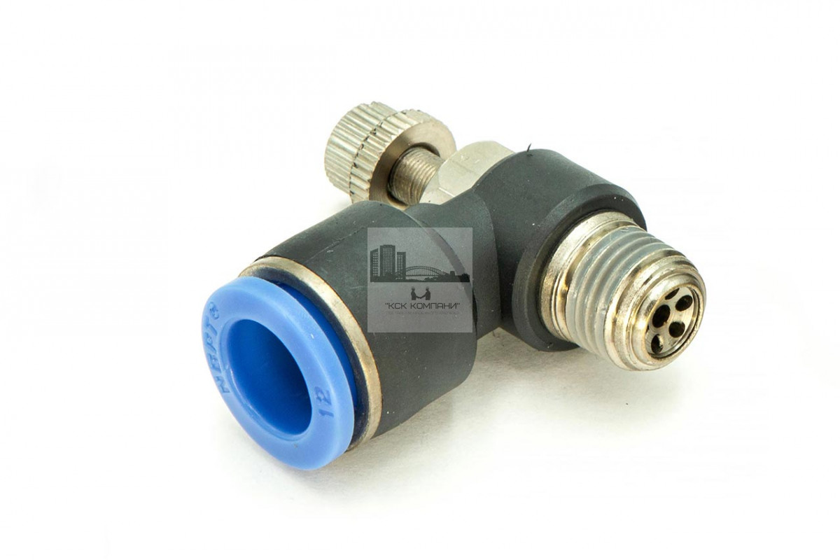 NSC – модель фитинга (трубка-резьба-регулятор): L-образный с наружной резьбой с одной стороны и нажимным цанговым соединением с другой стороны и регулятором воздуха.