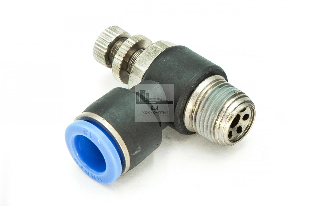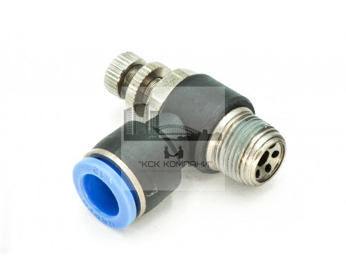NSC – модель фитинга (трубка-резьба-регулятор): L-образный с наружной резьбой с одной стороны и нажимным цанговым соединением с другой стороны и регулятором воздуха.