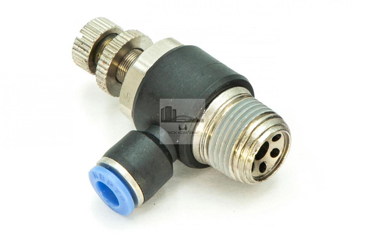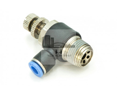 NSC – модель фитинга (трубка-резьба-регулятор): L-образный с наружной резьбой с одной стороны и нажимным цанговым соединением с другой стороны и регулятором воздуха.