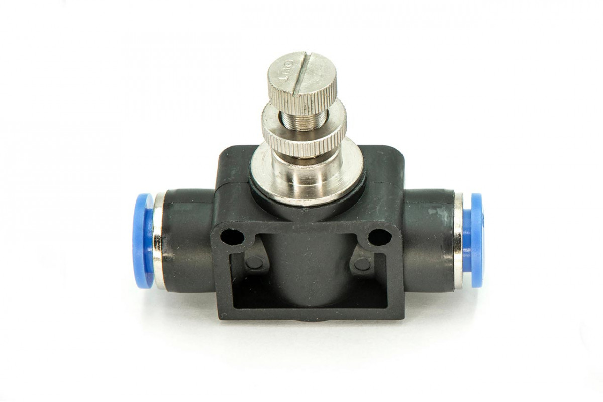 SCF – модель фитинга (трубка-регулятор-трубка): прямой фитинг-соединитель с нажимным цанговым соединением с двух сторон и регулятором.