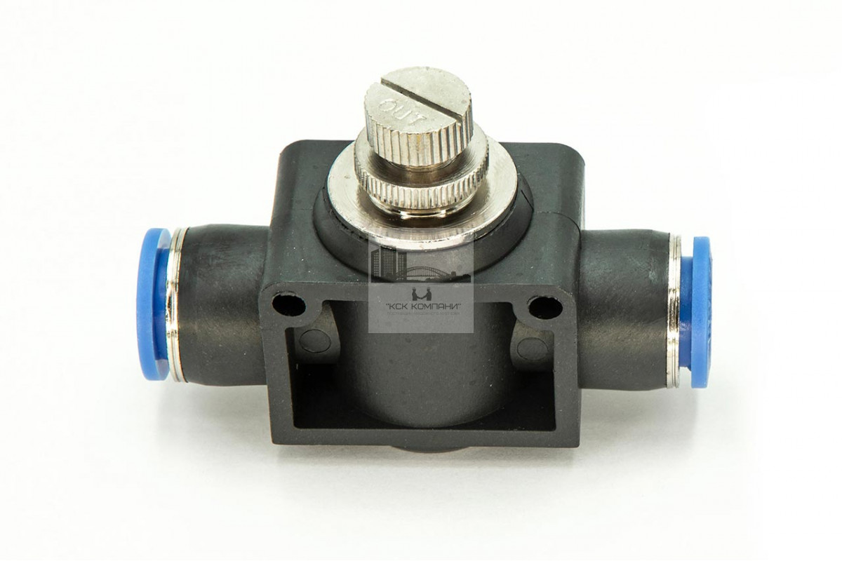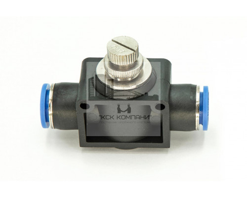 SCF – модель фитинга (трубка-регулятор-трубка): прямой фитинг-соединитель с нажимным цанговым соединением с двух сторон и регулятором.